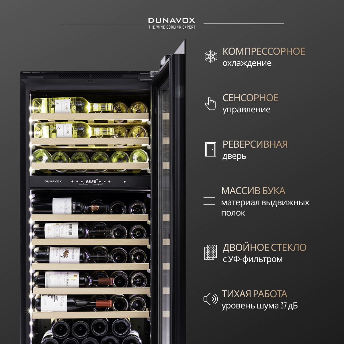 10 цен на Встраиваемый винный шкаф Dunavox DAVG-72.185DB.TO