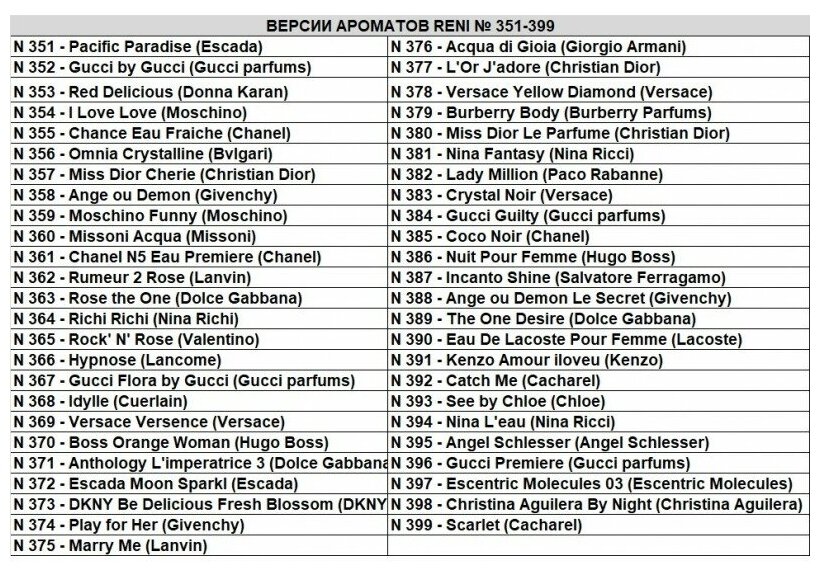 Reni № 343 Духи женские 100 мл информация: