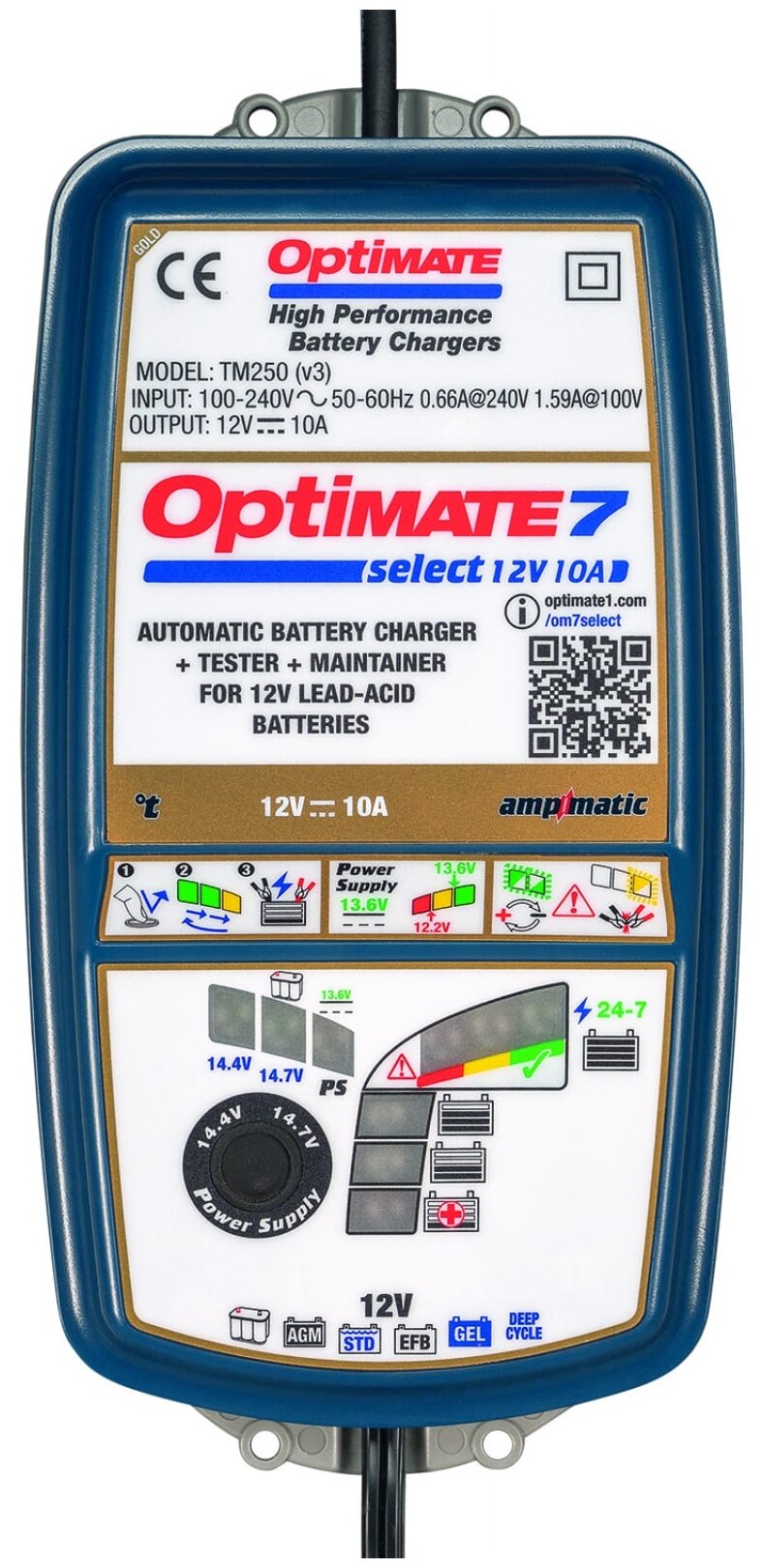 Зарядное устройство OptiMate 7 SELECT GOLD (1x10А, 12V),(TM250) TM250V3 информация: