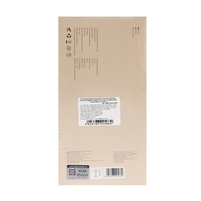 SOLOVE Портативный вентилятор Xiaomi Solove N9P, зарядная подставка, 3 скорости, 2000 мАч, зеленый информация: