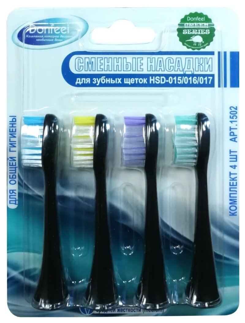 Сменные насадки средней жесткости для зубной щетки Donfeel HSD-015, 016, 017 (арт. 1502) черные информация: