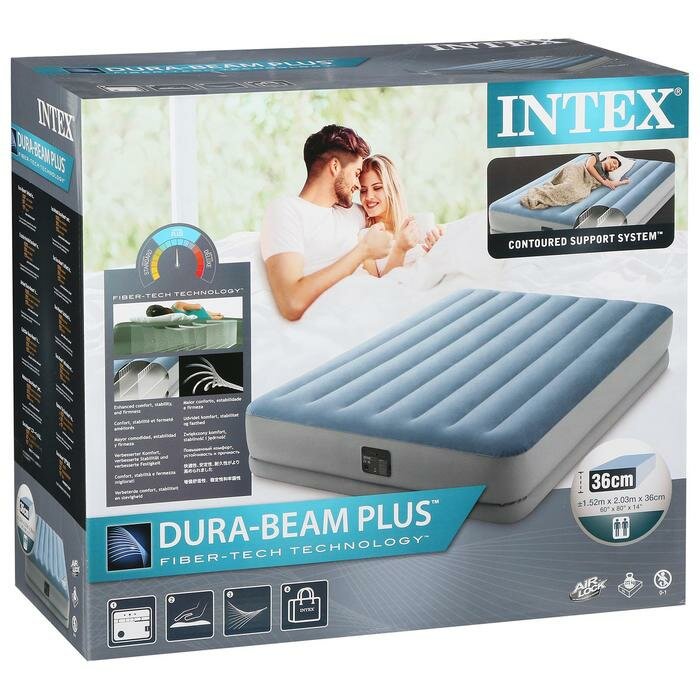 INTEX Кровать надувная Raised Comfort, 152 х 203 х 36 см, встроенный насос 220В, до 272 кг, 64168NP INTEX информация: