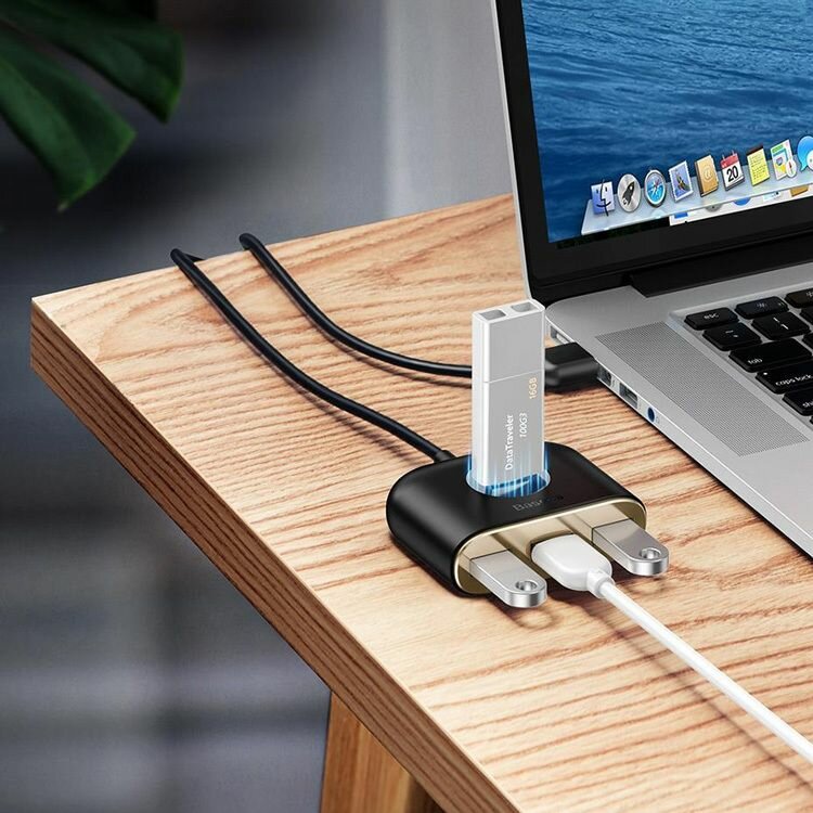 USB-концентратор Baseus Square round (CAHUB-AY01), разъемов: 4, 100 см, черный