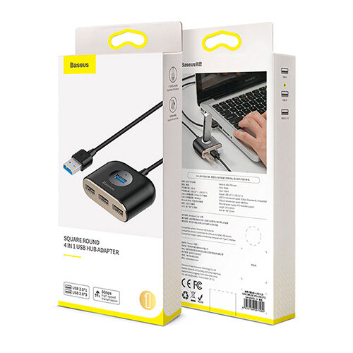 Baseus Square Round 4in1 USB HUB Adapter USB 3.0 - USB 3xUSB 2.0 1m Black CAHUB-AY01 информация: