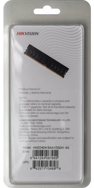 Оперативная память Hikvision HKED4041BAA1D0ZA1/4G DDR4 - 1x 4ГБ 2666МГц, DIMM, Ret
