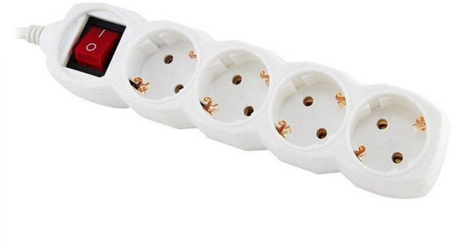 Удлинитель бытовой У04В, 4 гнезда, с заземлением и выключателем, ПВС 3x1, 1,5м