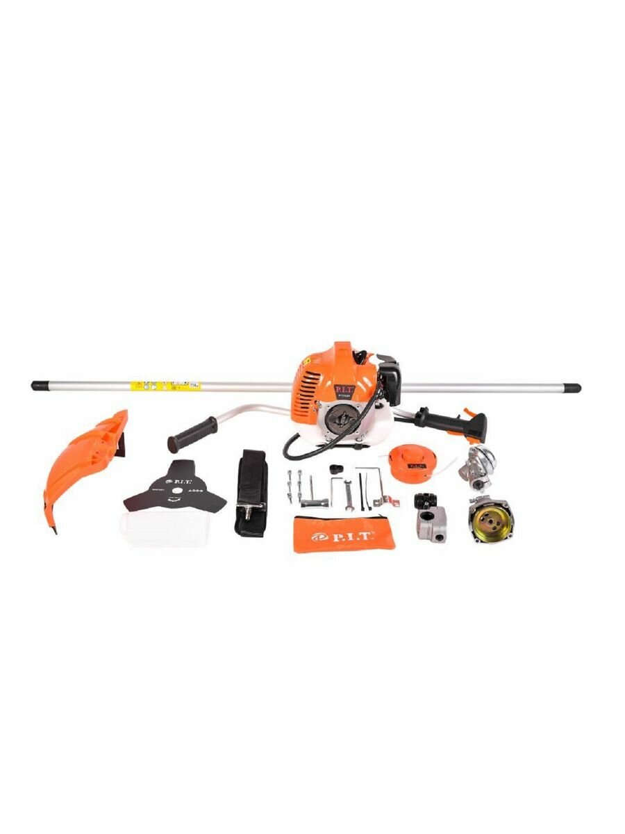 Триммер бензиновый P.I.T. Стандарт P73102A / объем двигателя 52 см3 / 2.3 л.с./ ширина скашивания 44 см / 8500 об*мин / садовый / для травы / мотокоса / газонокосилка с ножом /с леской