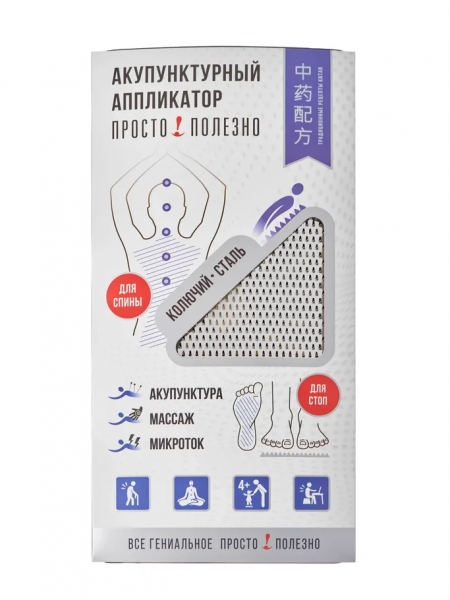 Акупунктурный аппликатор (массажер, коврик, лежак) Просто Полезно Колючий (Сталь) информация: