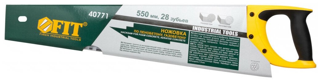 Ножовка по пенобетону FIT IT 40771, карбидные вставки на каждом 2-ом зубе, прорезиненная ручка 550 мм