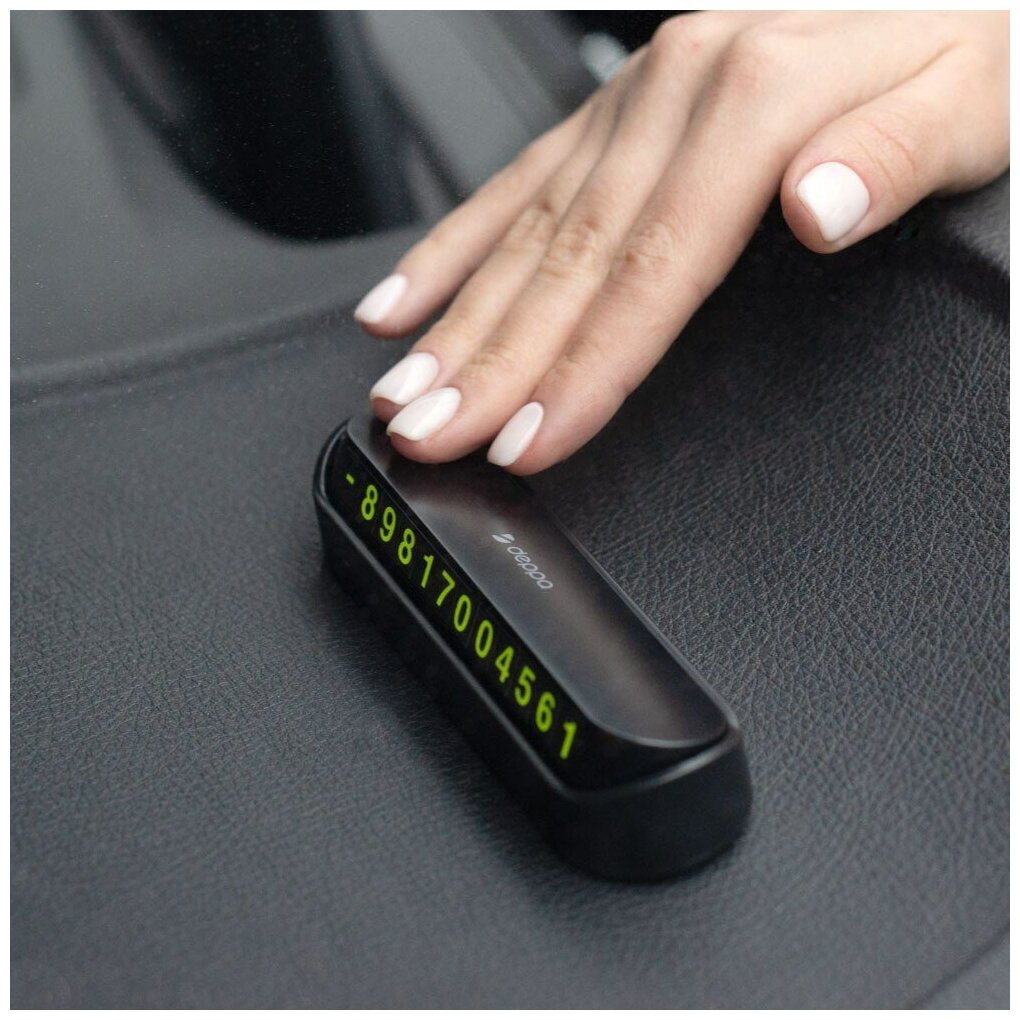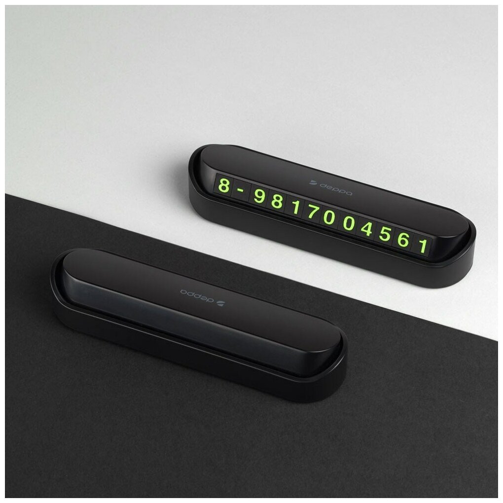 Парковочная автовизитка с номером телефона Deppa Parking Card, пластик, черный .
