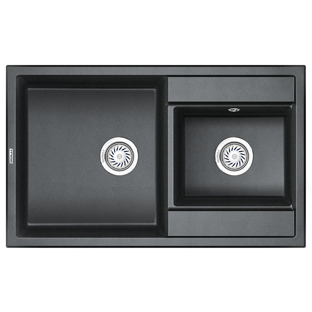 Кухонная мойка кварцевая Granula GR-8201 двухчашевая, врезная, чаша 400x440, 320x270, цвет шварц (8201sv) 14 400 ₽