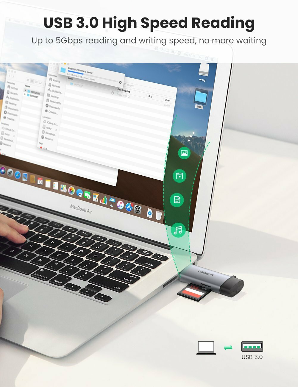 10 цен на Картридер Ugreen USB-C + USB-A 3.0 для карт памяти TF/SD