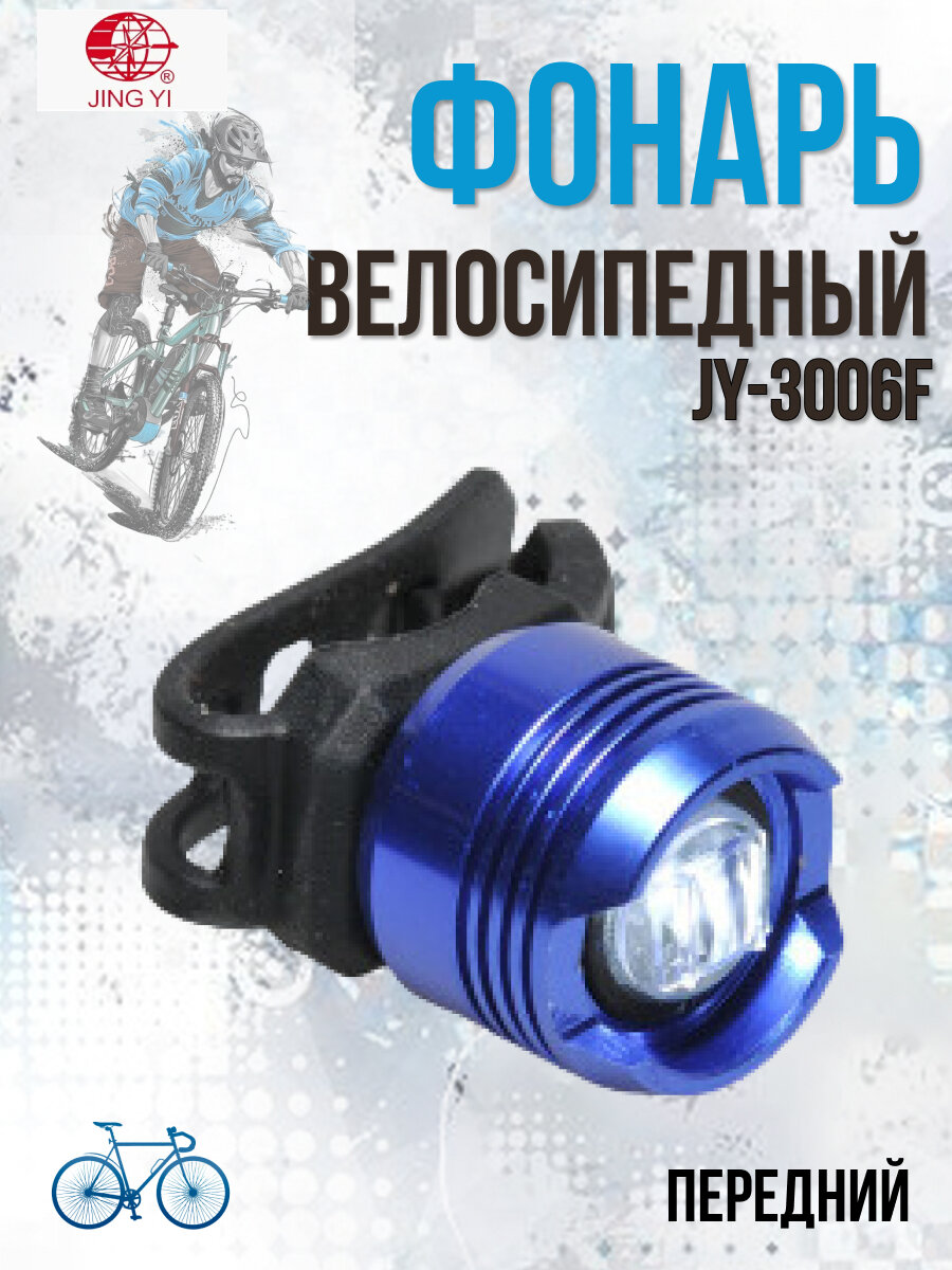 Фонарь передний JING YI, JY-3204F, 2 диода, 2 режима работы, под батарейки CR2032 (2 шт), белый свет