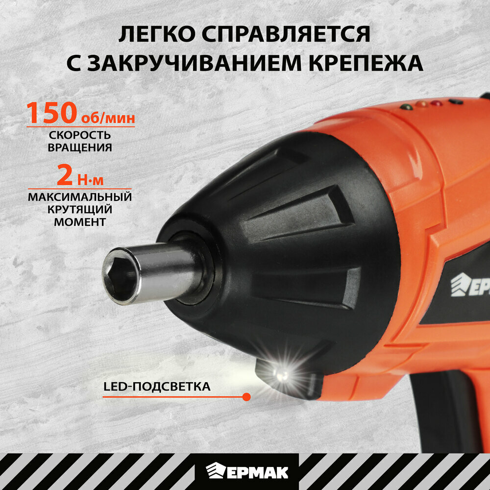 Аккумуляторная отвертка Ермак ОА-48C оранжевый/черный