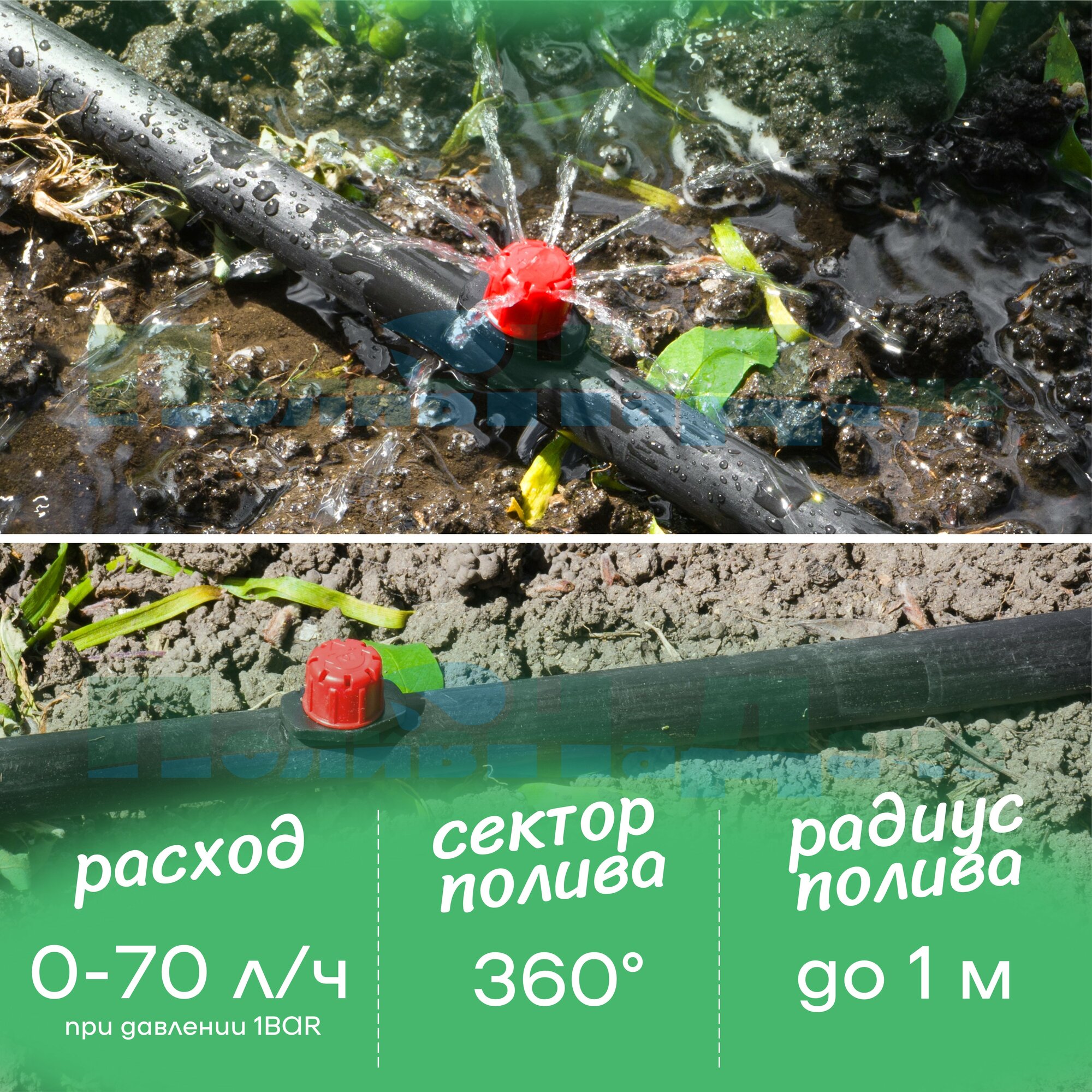 | Дополнительная информация | подключается к микротрубке 4х6 мм; не компенсированная, регулировка расхода подстраивается; при расходе до 14л/час микрокапельный полив; при расходе выше 14 л/час микродождевание, |