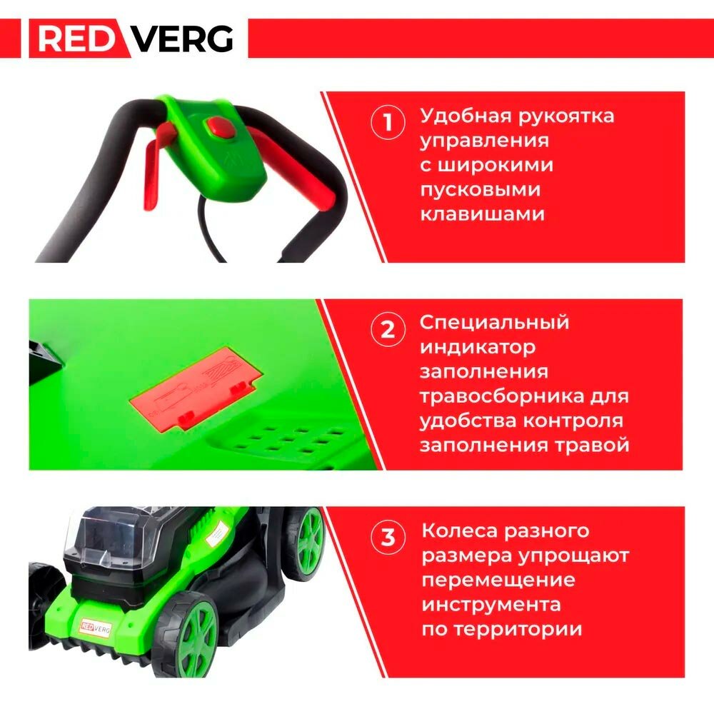 Электрическая газонокосилка RedVerg RD-ELM105G, 1800 Вт, 40 см