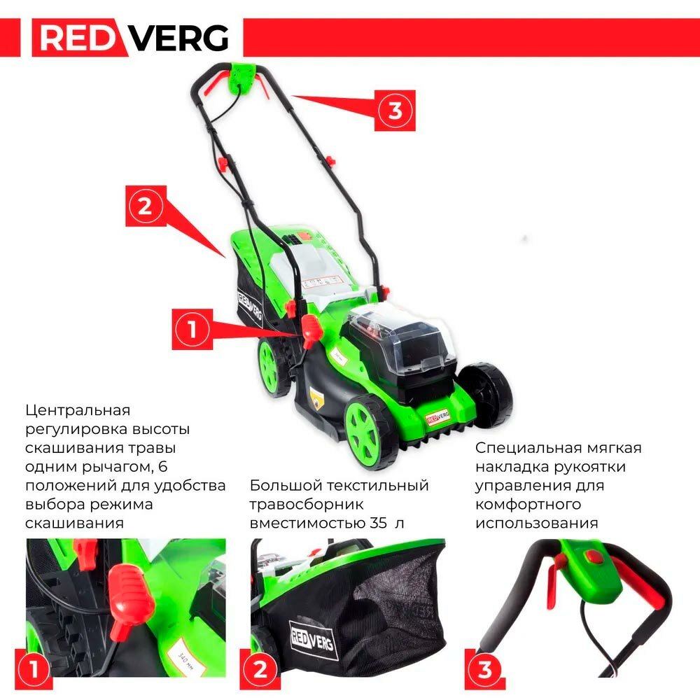 Газонокосилка аккумуляторная RedVerg RD-LM340-36V (без акк, без з/у) информация:
