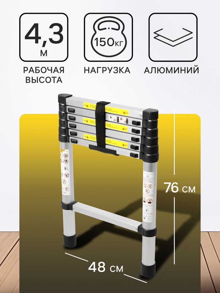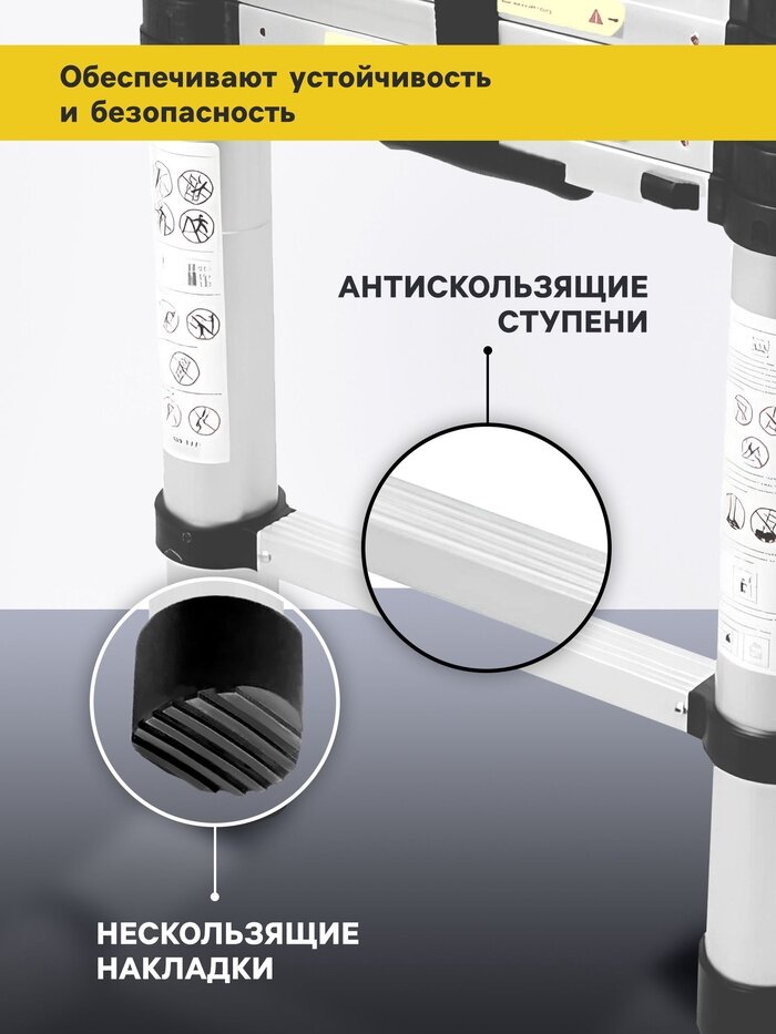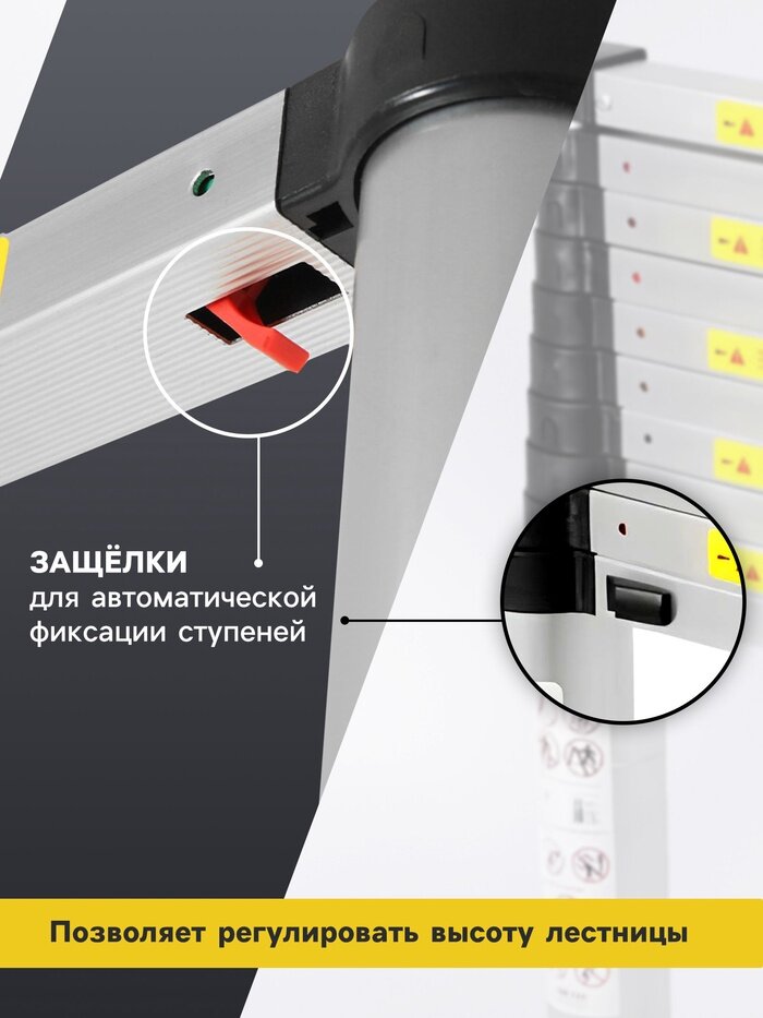 Лестница телескопическая тундра, алюминиевая, 9 ступеней, автомат, 2.6 м информация: