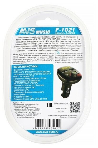 FM-Трансмиттер AVS F-1032L A40866S