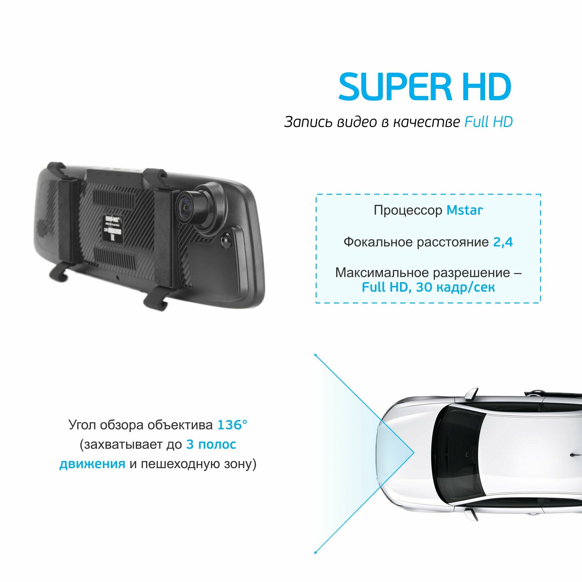 Радар-детектор с видеорегистратором Sho-Me Combo Mirror 12 690 ₽