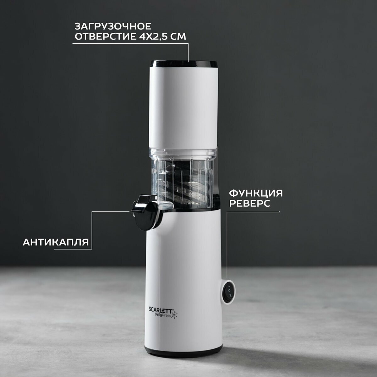 Соковыжималка шнековая Scarlett DailyPress SC-JE50S59 белый (je50s59) информация: