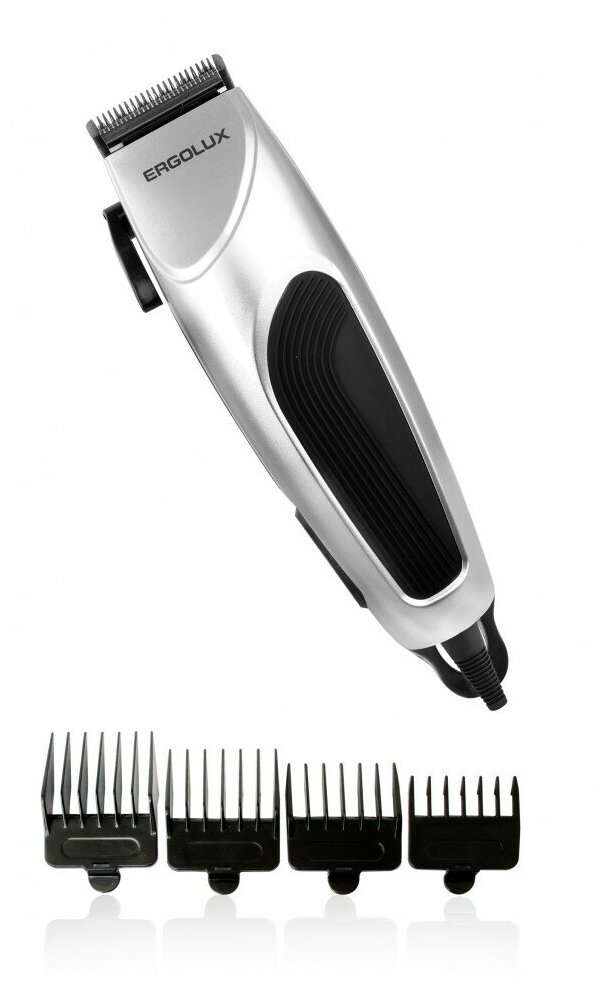 Машинка для стрижки волос ERGOLUX ELX-HC03-C42 10W, 4 насадки, 220-240V, серебро 87172