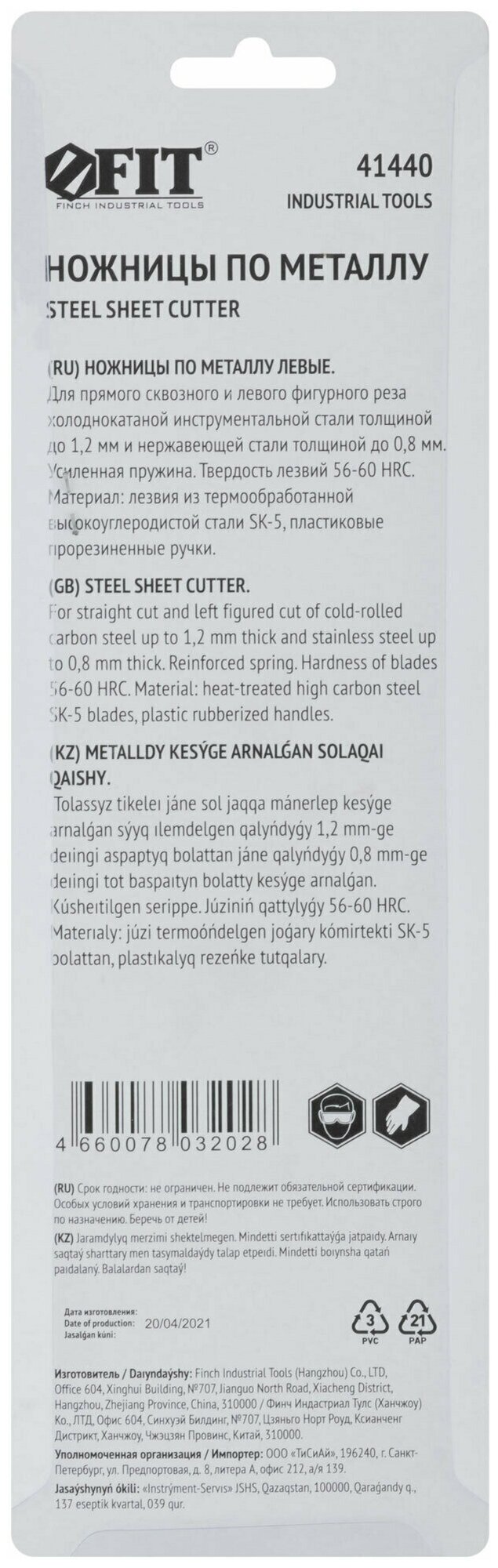 FIT Ножницы по металлу 250 мм правые усиленные CrV для стали до 1,2 мм и нержавеющей стали до 0,8 мм, прорезиненные ручки 1 827 ₽