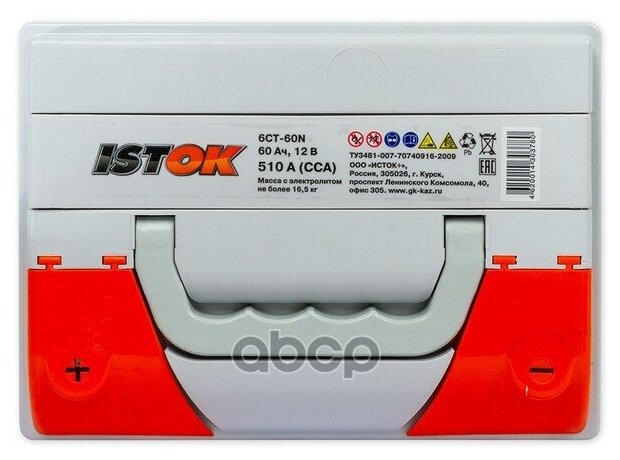 Аккумулятор исток 60 А/ч Прямая 242x175x190 информация: