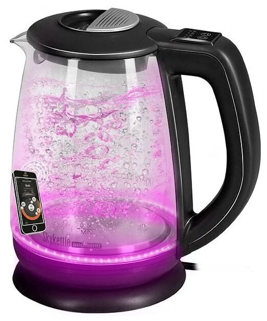 Электрический чайник со стеклянной колбой РЕДМОНД KG255, 1,5 л, LED-подсветка, автоотключение, поворот 360°, черный