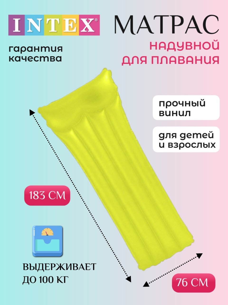Отзывы на INTEX Матрас пляжный «Неон», 183 х 76 см, цвет салатовый 59717NP INTEX