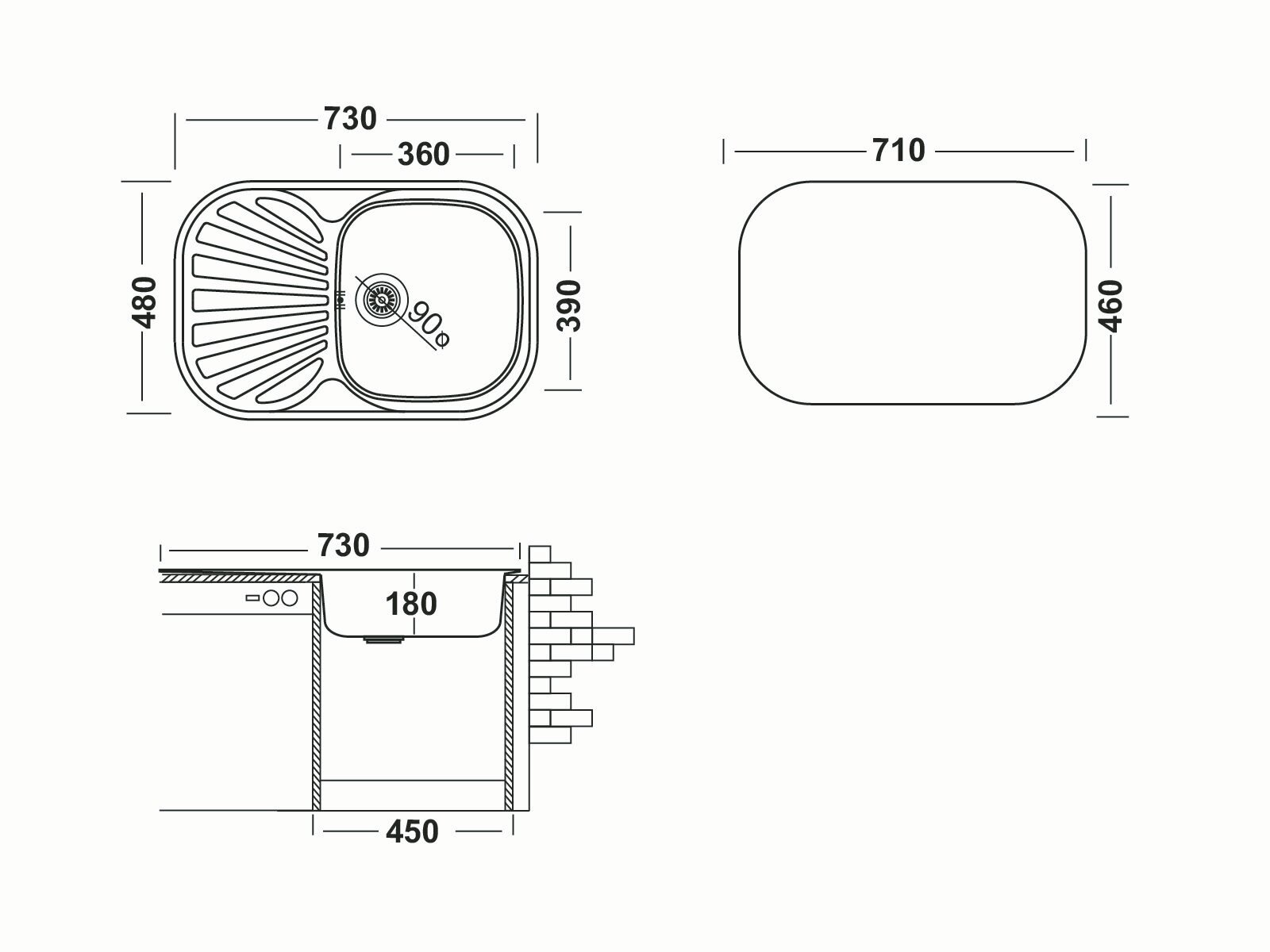 Мойка FABIA 62322L сатин врезная 78х48 см левая + большой сифон с переливом