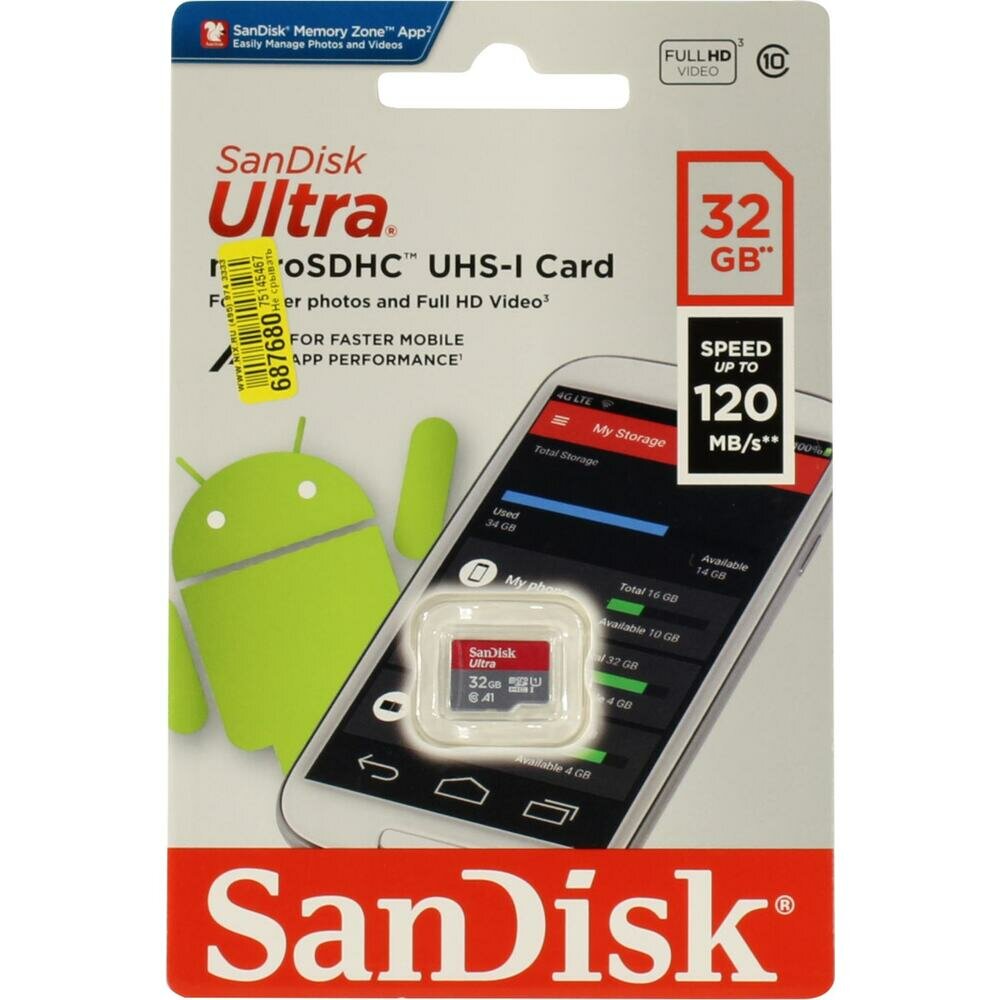 Карта Памяти micro Sdhc 32Gb Sandisk Ultra Class 10 Uhs-i A1 (120/10 MB/s) Sdsqua4-032g-gn6mn . информация:
