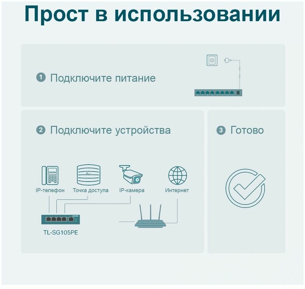 Отзывы на Коммутатор TP-LINK TL-SG105PE 5-портовыq, 4*PoE+, бюджет PoE 65 Вт, поддержка 802.1q VLAN