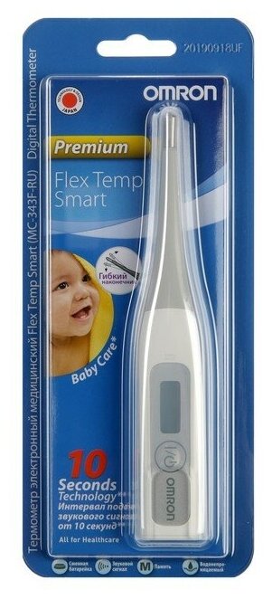 OMRON Термометр электронный Omron Flex Temp Smart MC-343F, водонепроницаемый, гибкий наконечник информация: