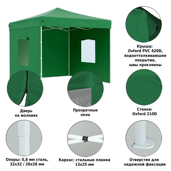 Тент-шатер садовый быстро сборный Helex 4331 3x3х3м полиэстер зеленый информация: