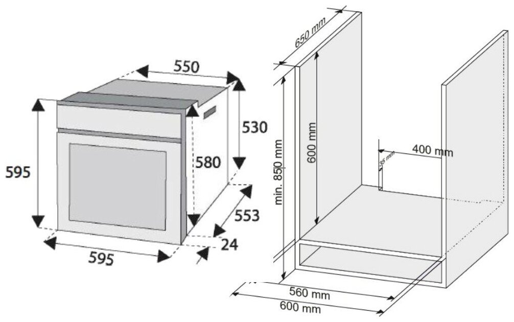 Духовой шкаф встраиваемый LEX EDM 077 C IV, 60 см, с конвекцией, механические ручки, объем 60 л, аналоговый таймер, телескопические направляющие.