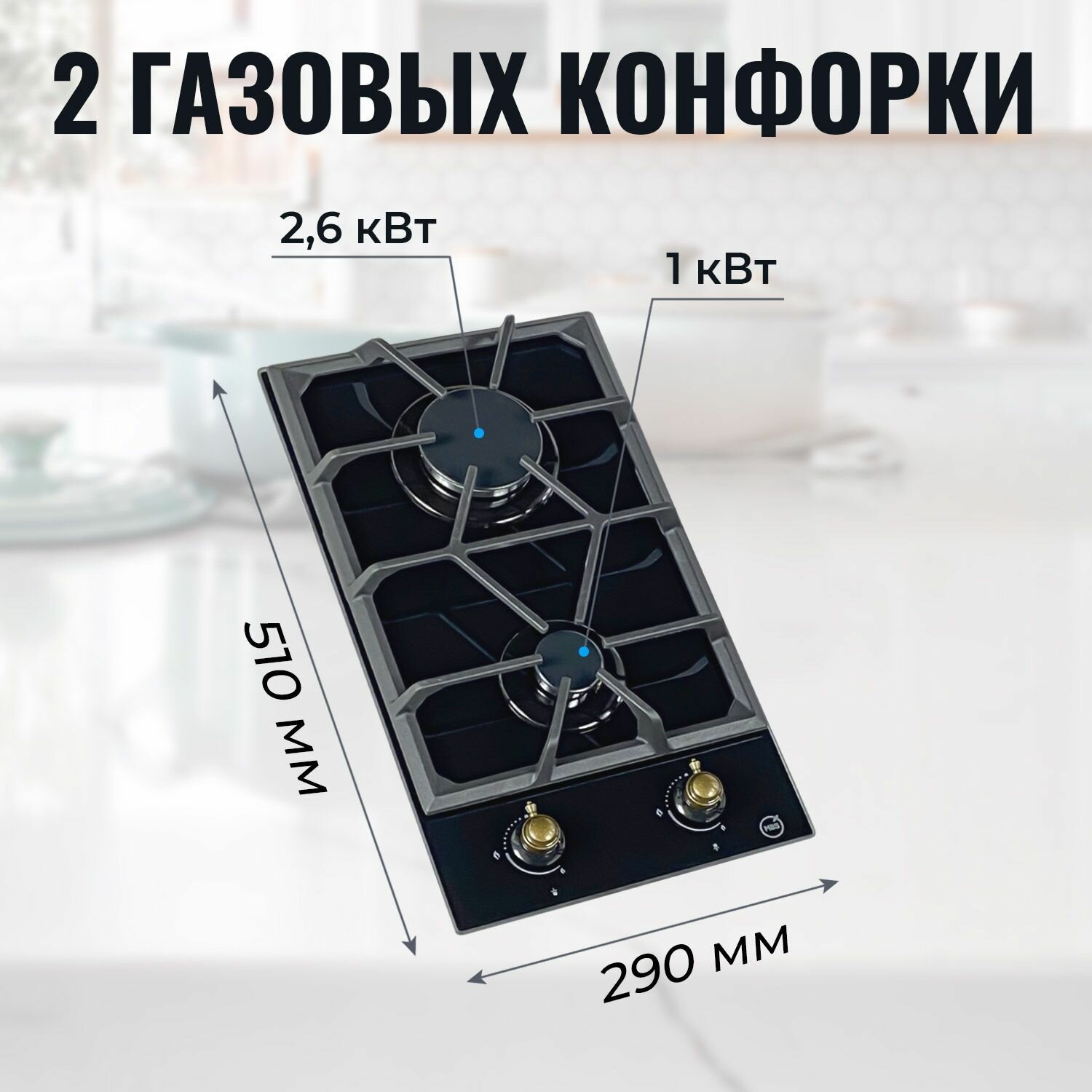| Дополнительная информация | 2 газовые конфорки: 1 конфорка повышенной мощности 2600 Вт 1 экономичная конфорка 1000 Вт |