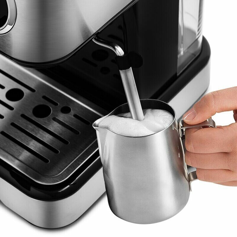 Кофеварка рожковая Kitfort KT-765, 1100 Вт, 15 бар, дисплей, капучинатор, платформа для чашек, съёмный резервуар для воды, серебристый