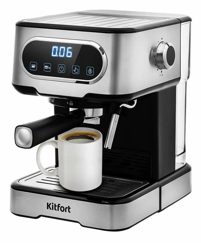 10 цен на Кофеварка рожковая Kitfort KT-765, серебристо-черная