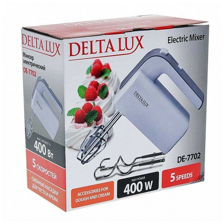 Миксер DELTA LUX DE-7702 белый с серым : 400 Вт,4 насадки,5 скоростн.режимов. 1 973 ₽