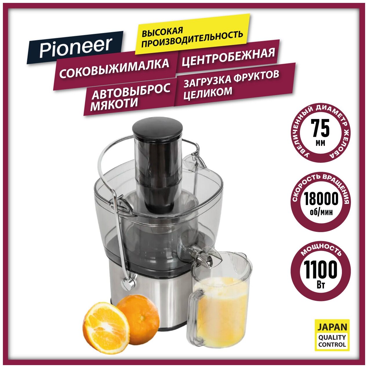 Соковыжималка центробежная Pioneer высокопроизводительная с 2 режимами скорости, автовыбросом мякоти и автоблокировкой, 1100 Вт