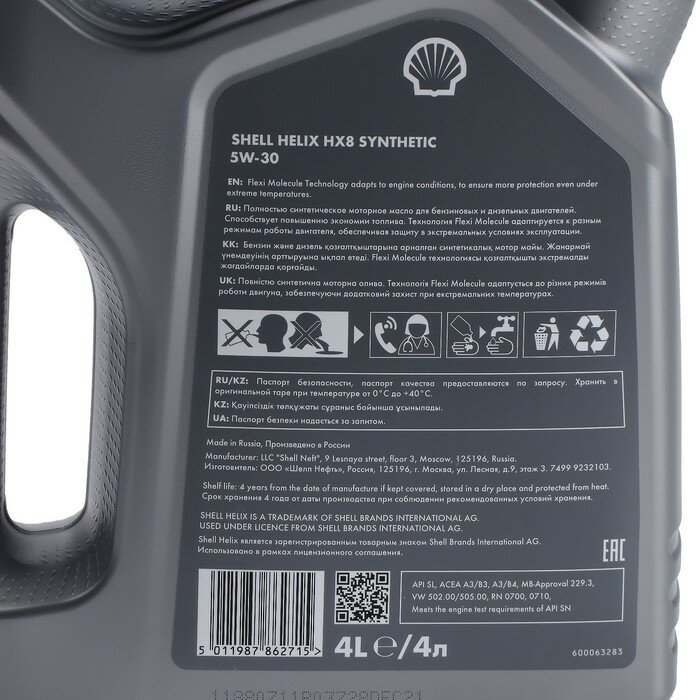 SHELL 550046364 Масло моторное Shell Helix HX8 Synthetic 5W-30 4*4L 4 847 ₽