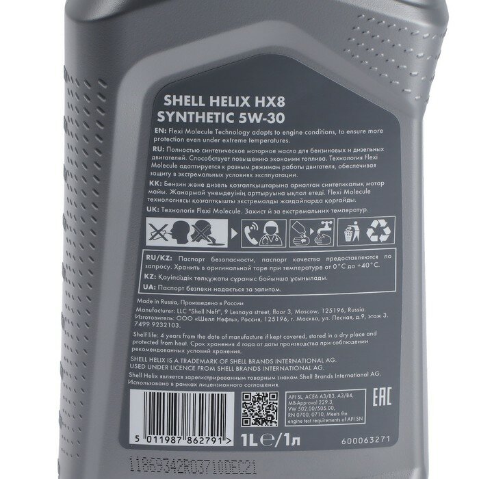 Shell Shell Helix Hx8 Synthetic 5w-30 1l = 550040462 13 960 ₽
