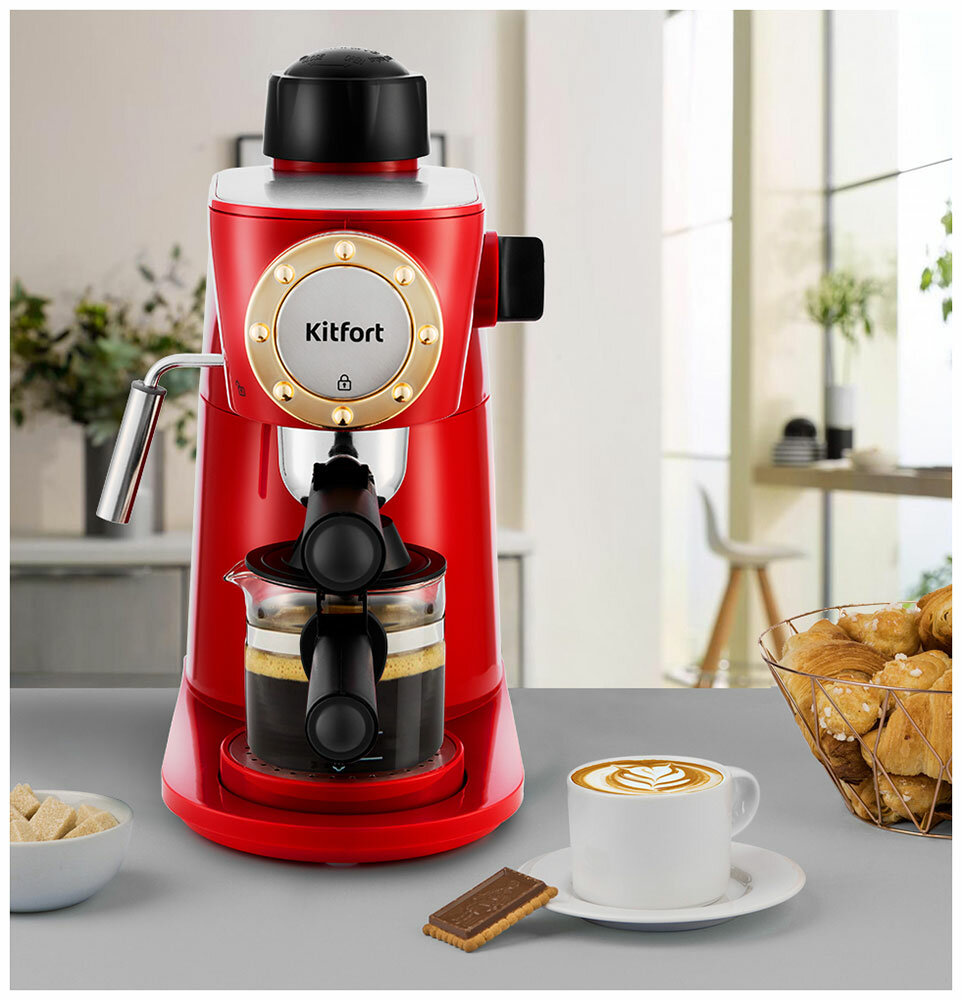 Кофеварка KitFort КТ-756, рожковая, красный / черный