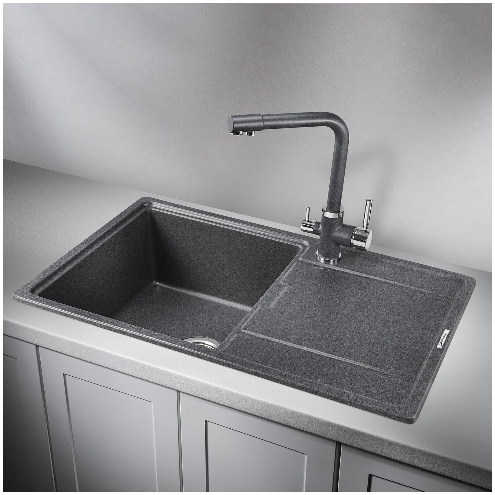 Накладная кухонная мойка Weissgauff WG 505, 50.5х50.5см, кварцевый искусственный камень