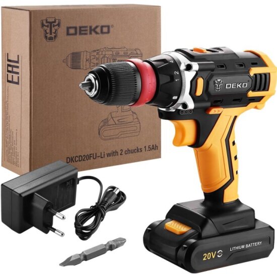 Аккумуляторная дрель-шуруповерт DEKO DKCD20FU-Li со съемным патроном, 1x1.5Ач