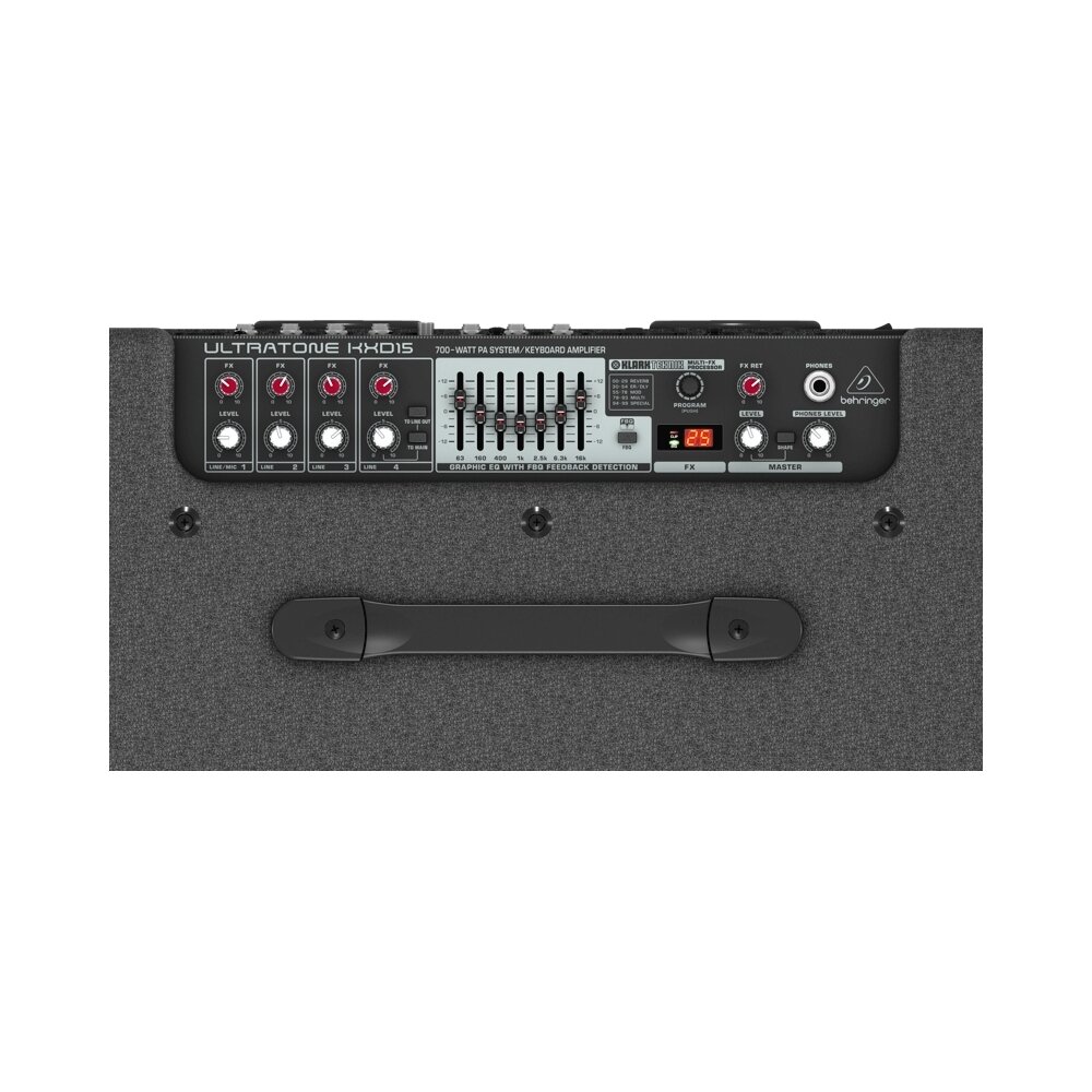Behringer KXD15 клавишный усилитель 600Вт, 15", 4 канала, KLARK TEKNIK FX информация: