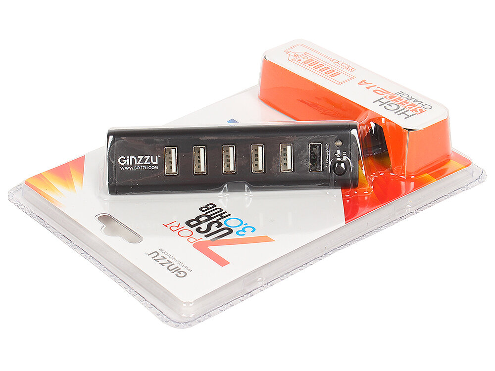 Разветвитель Ginzzu USB GR-315UB USB, 7 портов (1xUSB 3.0 + 6xUSB 2.0) черный