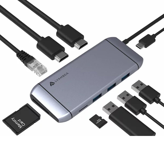 10 цен на Мульти хаб Lyambda Type-C Slim Aluminum 9-in-1 LC123 серый