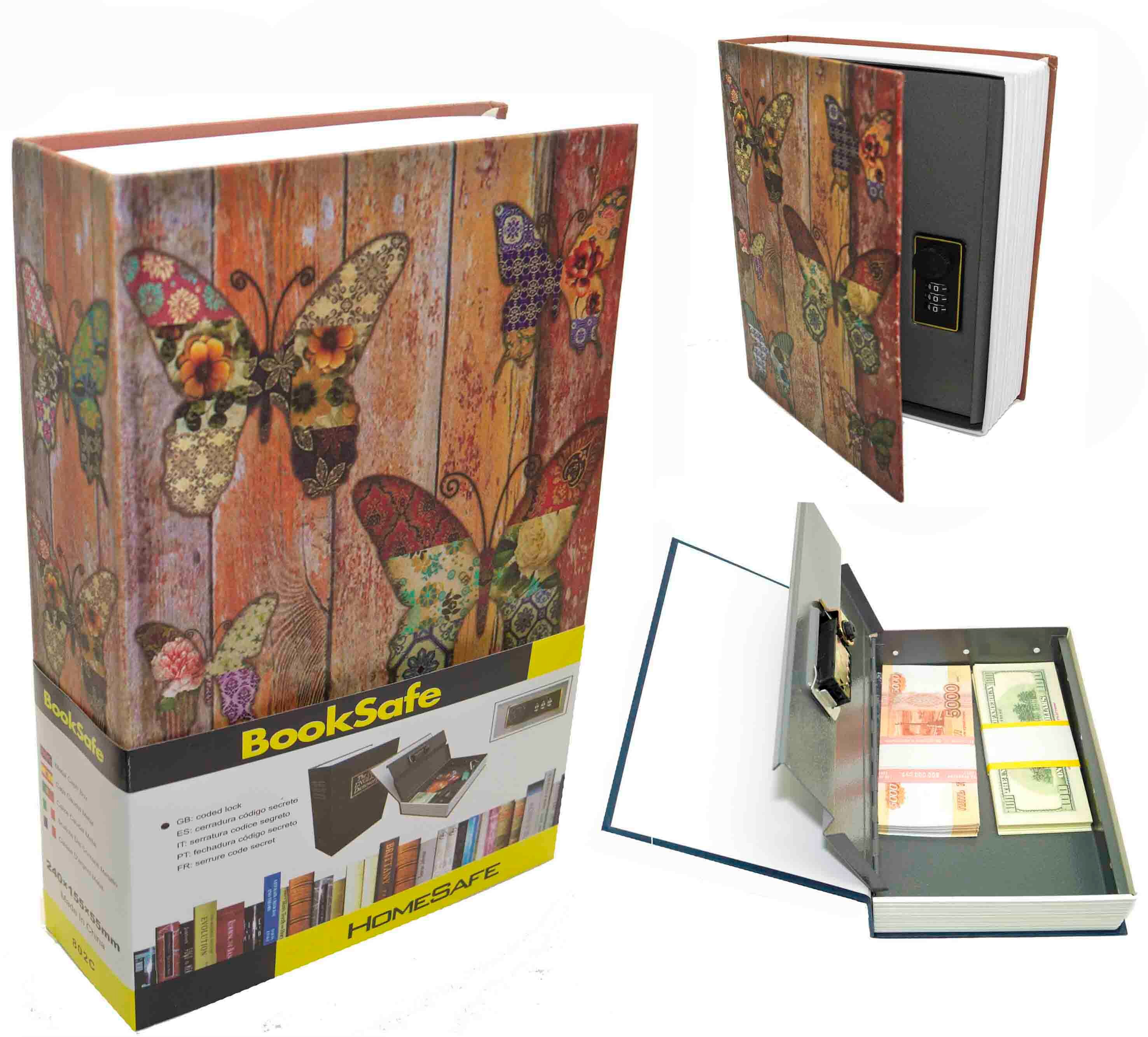 Книга сейф с кодовым замком Butterfly| 24x16x6см информация:
